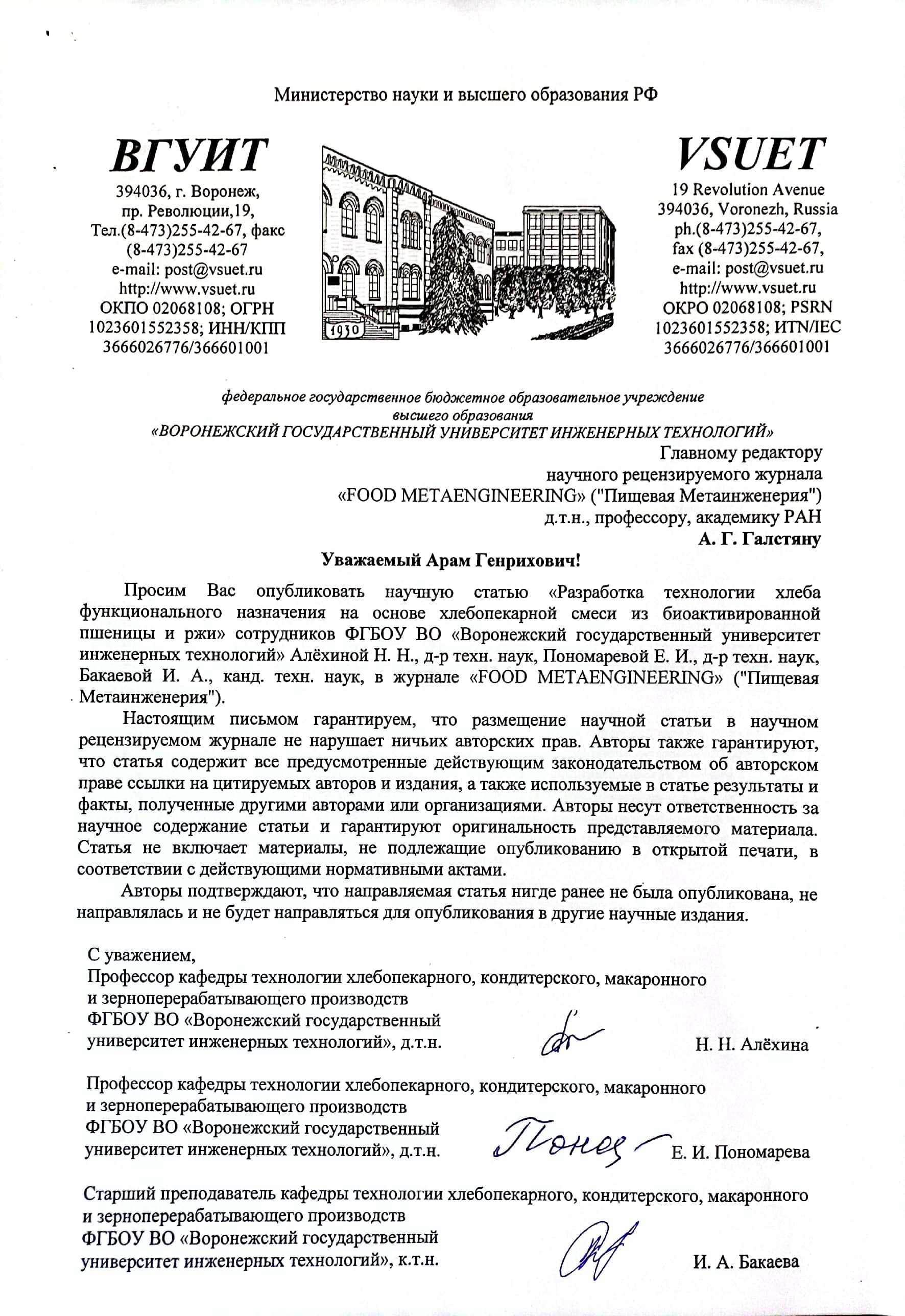 Воронежский государственный университет инженерных технологий